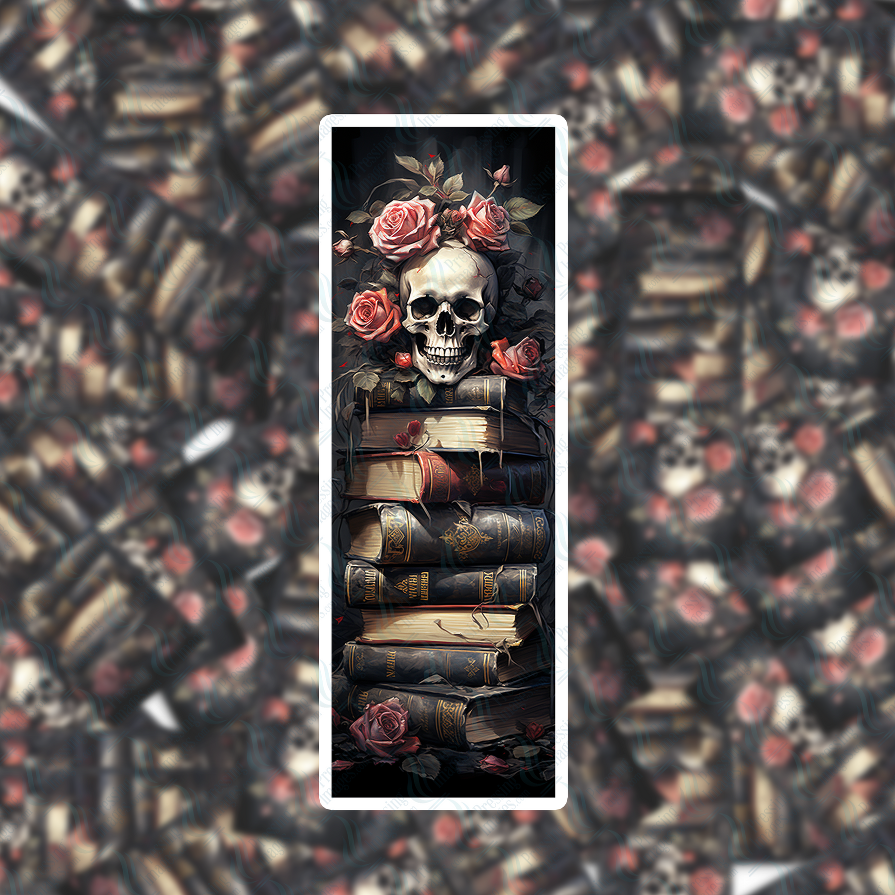 PI 0318 Red Rose Skull 2 Bookmark Decal & Acrylic Blank