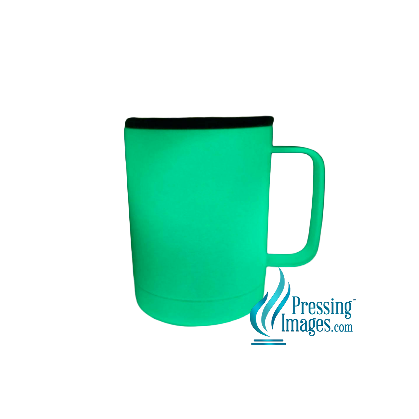 This Semi gloss White Coffee Cup glows green in the dark, has a slight textured feel, and is a 12oz, vacuum insulated, thermal tumbler using premium grade 18/8 stainless steel